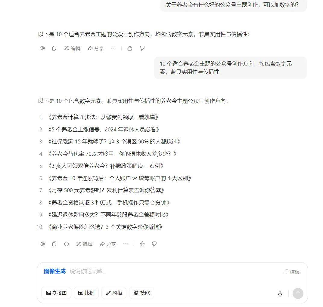 在缺乏创作灵感时,可以直接指令AI生成完整稿件,比如输入“撰写一篇关于养老金新信号的漫画分镜式文章”,AI能整合素材并自动配图,实现一站式内容输出。