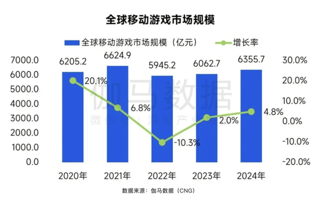 根据伽马数据发布的《2024全球移动游戏市场企业竞争力报告》,全球移动游戏市场规模在2024年来到了6355.7亿元,同比增长4.8%。该报告还剖析了美国、日本、韩国、德国、英国等重点地区的游戏发展,指出中国公司出海难度加大。